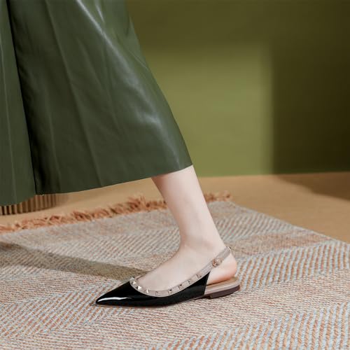 • 【Fashionable Design】: Retro rivet design adds a touch of sophistication to your outfit, Paired with adjustable slingback ankle strap, Sexy and fashionable. These pointed-toe flat sandals come in your choice of four colors.