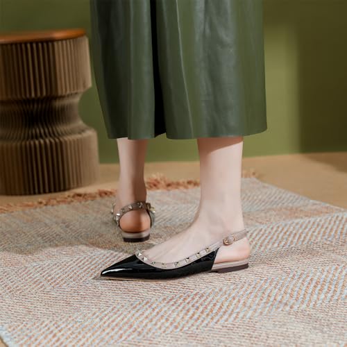 Helenbra Women's Rivet Pointed Toe Closed Toe Flats Sandals,Sexy Studded Adjustable Buckle Slingback Shoes Comfort Slip On Walking Travel Office Ballet Flat Shoes 4