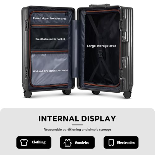 • 【ZIPPERLESS ALUMINUM FRAME – SECURE & SLEEK】Featuring a modern zipperless design with a sturdy aluminum alloy frame, this suitcase ensures enhanced security and smooth closing action. Its sleek, minimalist look sets it apart from traditional luggage.