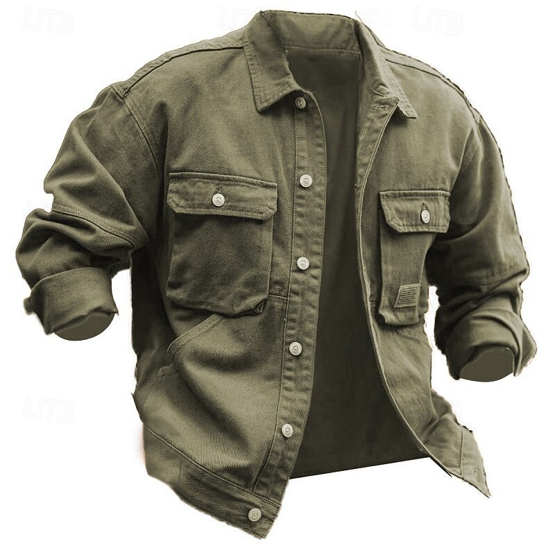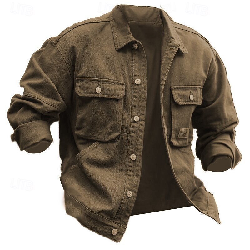 More information about Men's Lightweight Jacket Shirt Jacket Casual Jacket Work Jacket Formal Home Pocket Spring Fall Winter Solid Color Vintage Fashion Turndown Regular Black Brown Green Khaki Jacket