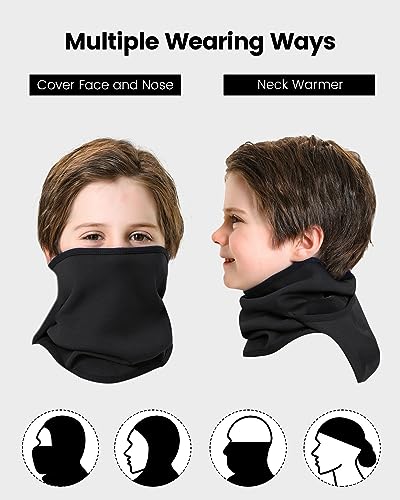 • Multifunctional & Practical: You receive three pieces of clothing in one -- 1 balaclava = 1 face warmer + 1 hat + 1 scarf. It is suitable for various outdoor sports and activities: hiking, running, climbing, camping, fishing, cycling, skiing, snowboarding, commuting, etc. It can also be used as a hat or helmet liner. It gives your kids a warm and cozy experience to enjoy winter activities; it is worth a try!