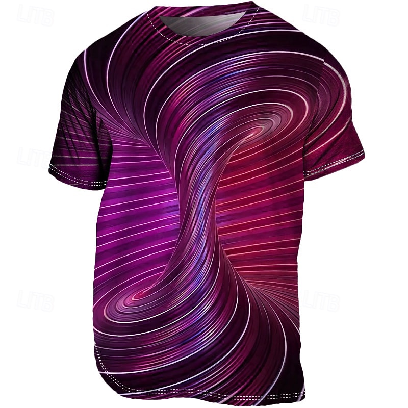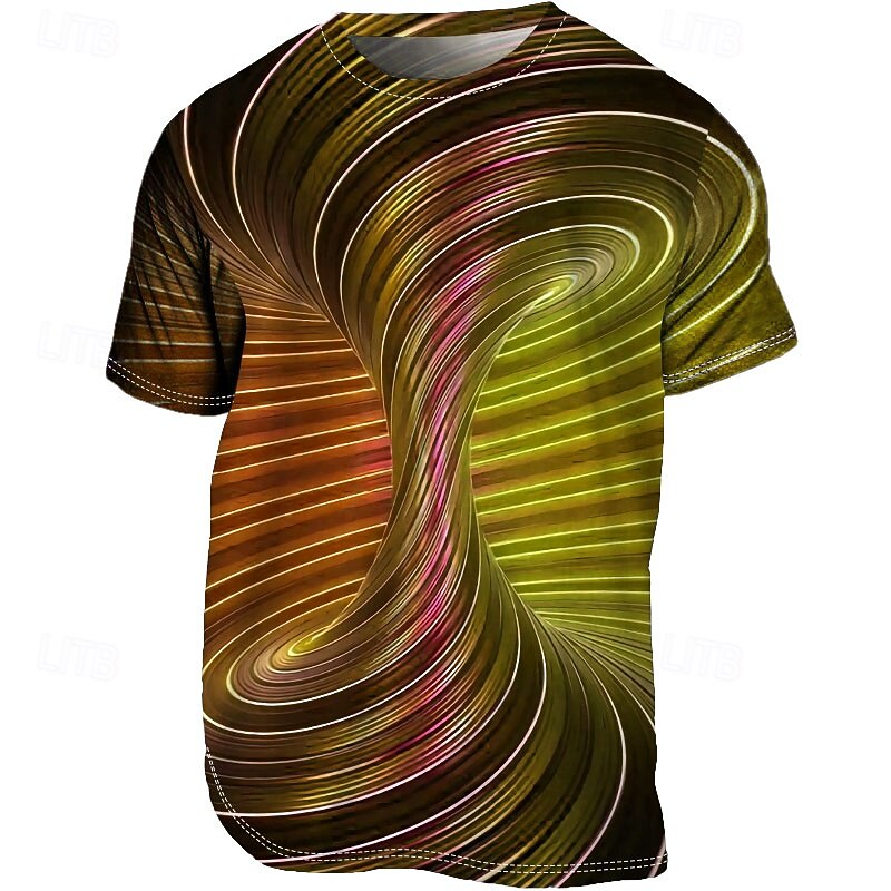 : This vibrant t-shirt showcases a dynamic 3D print with an optical illusion pattern in an array of colors. The swirling design is eye-catching and adds a bold, modern flair to any wardrobe. The high-quality print promises vivid colors and a long-lasting finish.