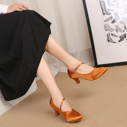 HIPPOSEUS Women's Latin Ballroom Dance Shoes Closed Toe Satin Salsa Practice Dancing Shoes Suede Sole 5