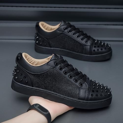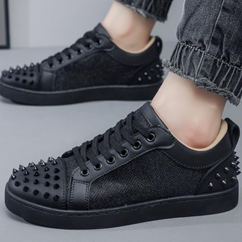 Men's Rivet Punk Sneakers Casual Fashion Low Top Lace Up Non-Slip Y2K Street Sneaker Comfortable Goth Dance Date Shoes 6