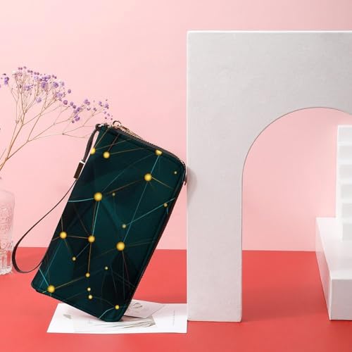 Colorful Geometric Shapes Angles Pattern Leather Wallet Fashion Bifold Purse Long Pouch with Wrist Strap for Men Women 6