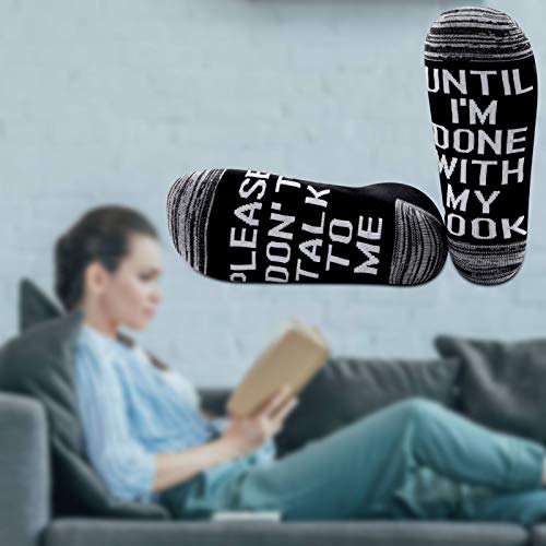 JXGZSO 2 Pairs Book Socks Book Gift Reading Gifts Book Lover Gift Please Don’t Talk To Me Until I’m Done With My Book Socks 6