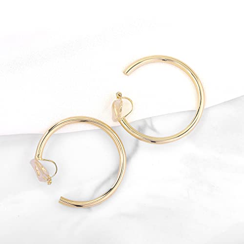 HOT ! YOQUCOL 14K Gold Plated Big Clip On Hoop Earrings Non Pierced Ears Hoops for Women (40MM)