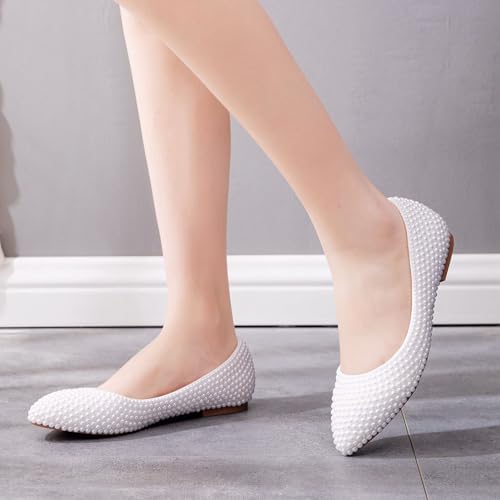 Women's Elegant Pointed Pearl Bridesmaids Shoes Ballet Flats 6