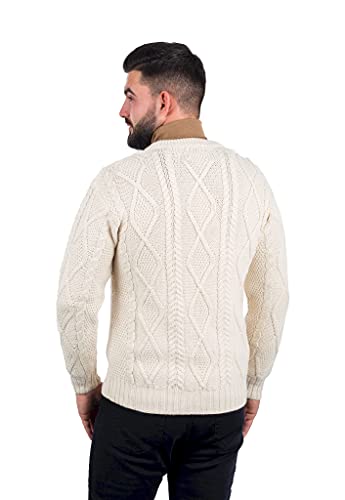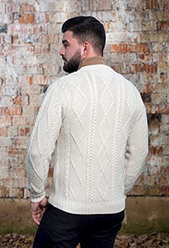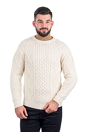 More information about SAOL Men's Irish Aran Sweater, 100% Merino Wool Crew Neck Pullover, Made in Ireland