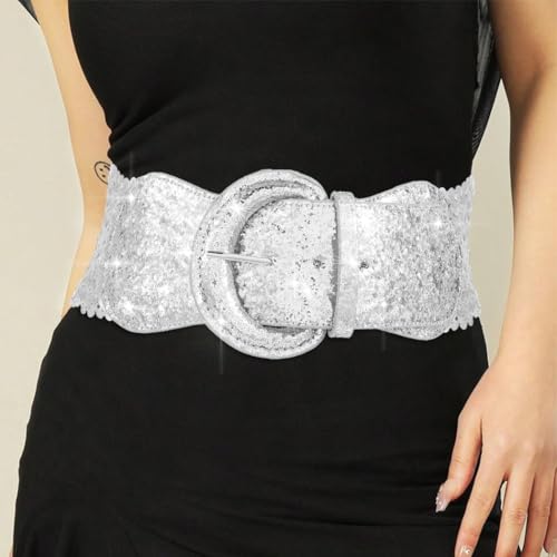 More information about Nicute Sequin Waist Belt Wide Sparkly Dress Belts Elastic Waistband Cinch Accessory for Women