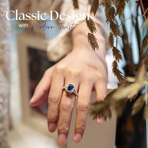 • PREMIUM QUALITY: High quality Simulated Sapphire and Cubic Zirconia stones crafted in 925 sterling silver engagement ring with rhodium plating. Nickel-free and lead-free.