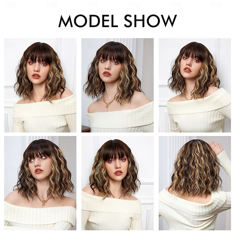 $24.99 - Cosplay Costume Wig Curly Bouncy Curl Bob Neat Bang With Bangs Wig 14 inch Black / Gold Synthetic Hair Women's Elastic Adorable Comfortable Black / Blonde 2025. Shop for cheap Synthetic Trendy Wigs online? Buy at lightinthebox.com on sale today!