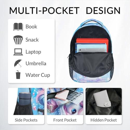 • Back Pack for School: Crafted from premium polyester fabric, this unicorn backpack for girls offers durable and lightweight performance. This personalized bookbag is easy to clean and is ideal for school, travel, and everyday adventures