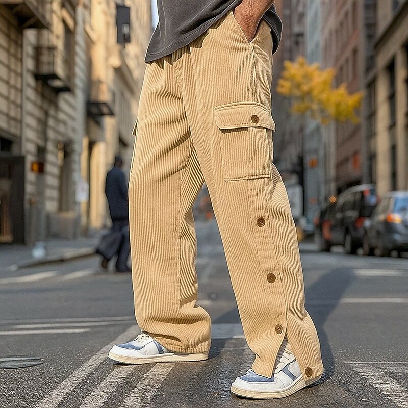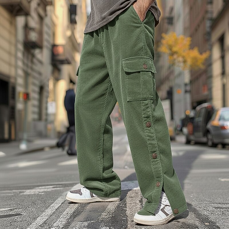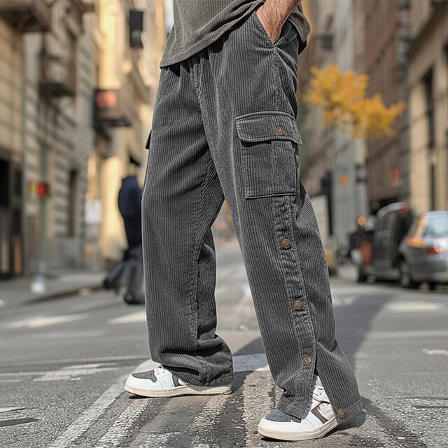 More information about Men's Cargo Pants Cargo Trousers Corduroy Pants Zipper Pocket Buttons Solid Color Plain Soft Breathable Full Length Formal Office Work Vacation Stylish Navy Blue Green Micro-elastic