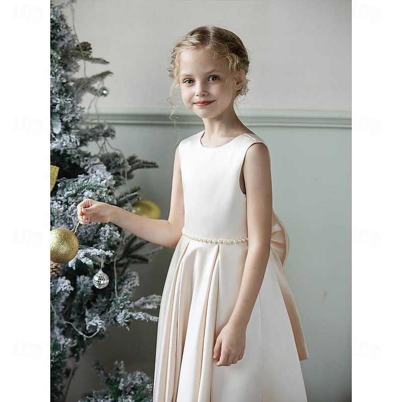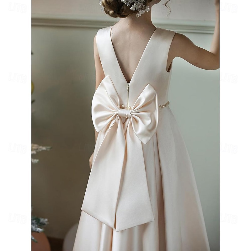 More information about Kids Girls' Flower Girl Dress Party Dress Solid Color Sleeveless Wedding Anniversary Party Fashion Adorable Daily Polyester Summer Spring 2-12 Years Beige