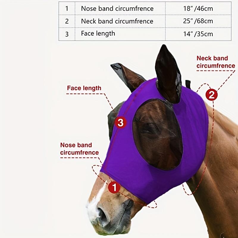 Breathable Horse Fly Mask With Ear, Mosquito Protection Mask, Horseback Riding Equestrian Equipment 24
