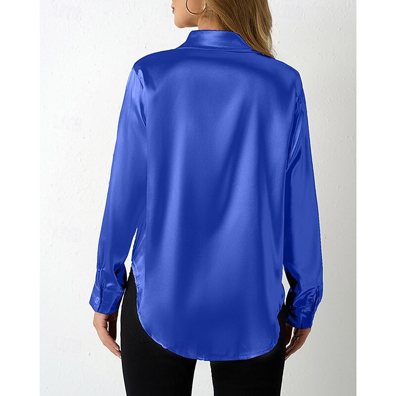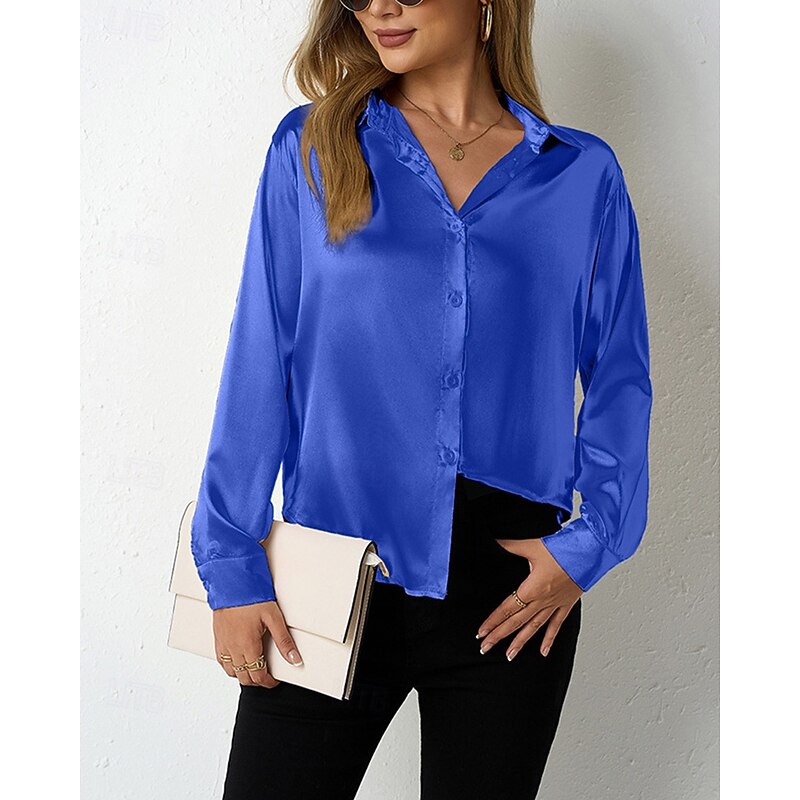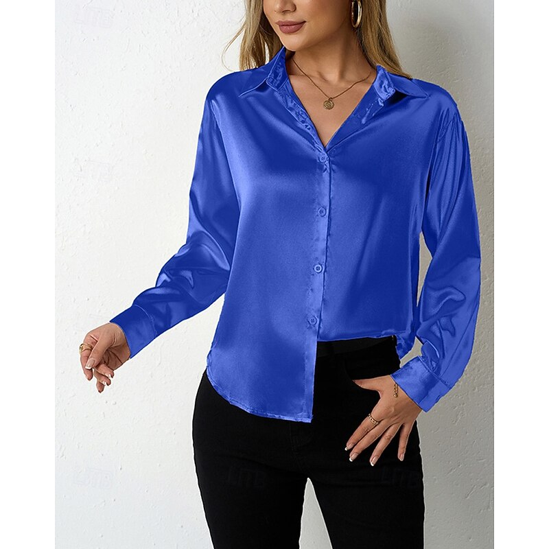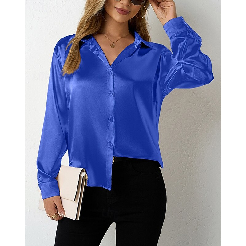 More information about Women's Shirt Elegant Dressy Satin Solid Color Stylish Casual Long Sleeve Shirt Collar Regular Tops Daily Going out Buttons Wine Royal Blue Purple Orange Green Spring Fall
