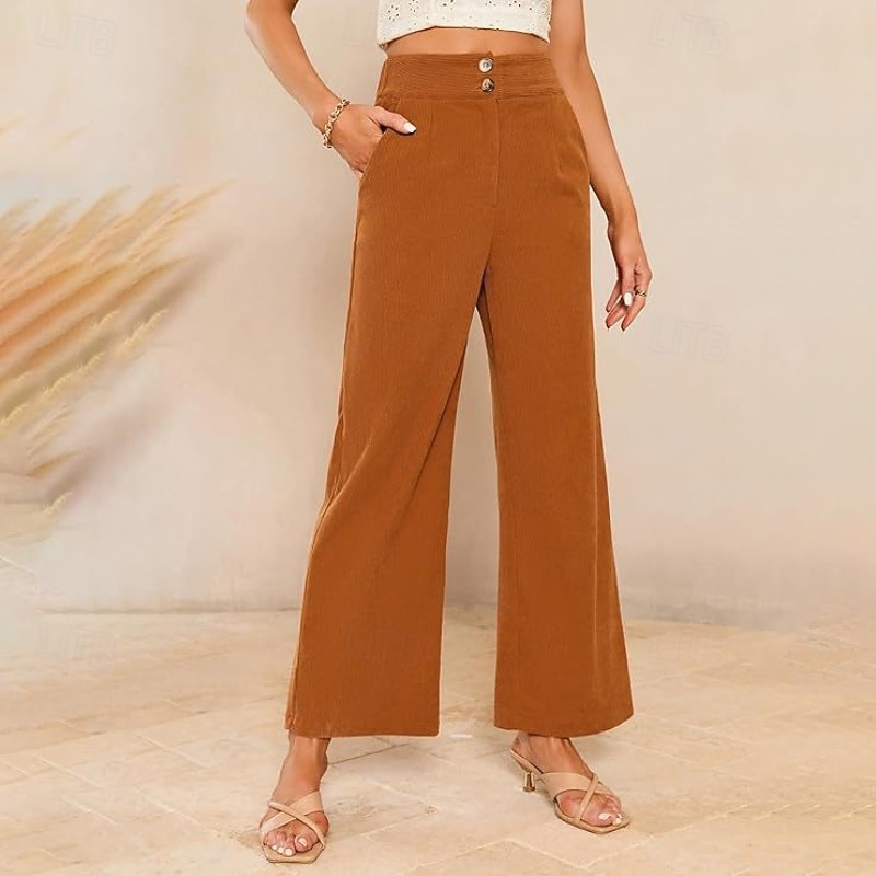 More information about Women's Corduroy Pants Slacks Pants Trousers Streetwear Casual Full Length Natural Plain Pocket Buckle Outdoor Comfortable Outdoor Vacation Daily Wear Apricot Black Orange Green Fall Regular Fit