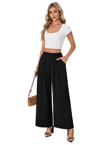 • Solid color, elastic waist back, high waist, pleated front, pull on, comfy and breathable fabric, pockets, wide leg, long palazzo pants for women and girls.