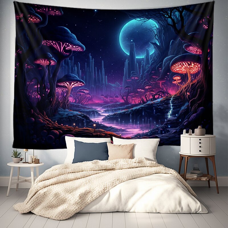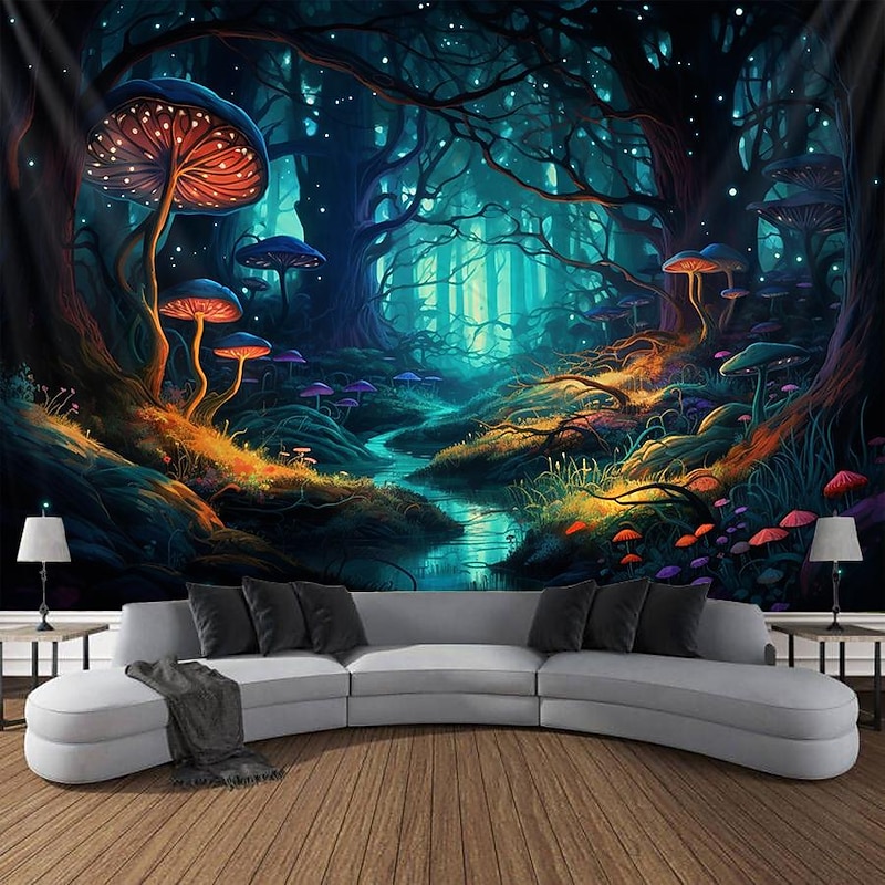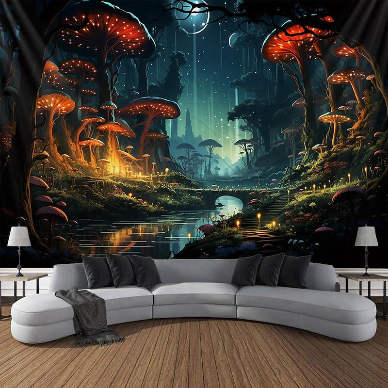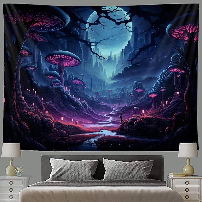HOT ! Trippy Mushroom Psychedelic Hanging Tapestry Wall Art Large Tapestry Mural Decor Photograph Backdrop Blanket Curtain Home Bedroom Living Room Decoration