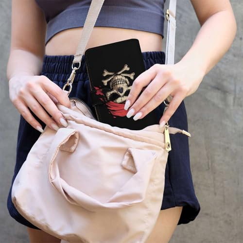 Jolly Roger Piratees Skull Crossbones Womens PU Leather Wallet Long Purse Clutch Organizer for Office Travel 7