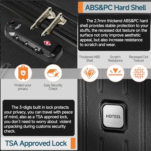 More information about Hoteel Luggage Sets, ABS+PC Hard Shell Suitcases with Wheels, TSA Aproved Lock and Carry on Bags, Travel Suit Case Set for Men and Women, (Black)