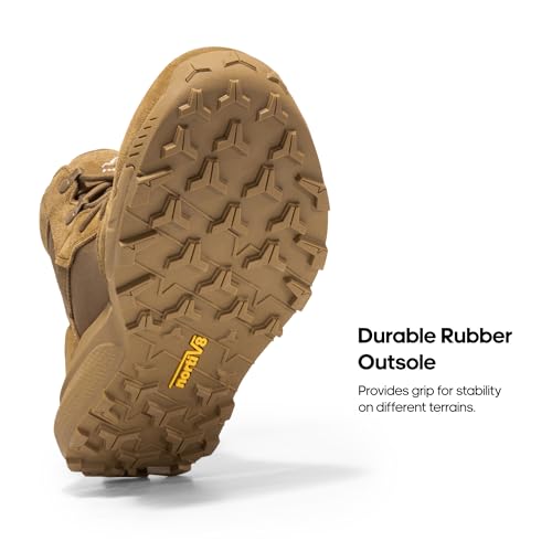 • Grip & Traction: The high-traction rubber outsole on these men’s military boots with an anti-slip tread pattern enhances grip on different terrain.
