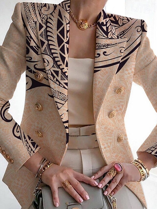 HOT ! Women's Blazer Comfortable Breathable Pocket Print Fashion Casual Geometric Office Street Casual Daily Wear Double Breasted Regular Turndown Slim Long Sleeve Outerwear Black White Red Summer Spring