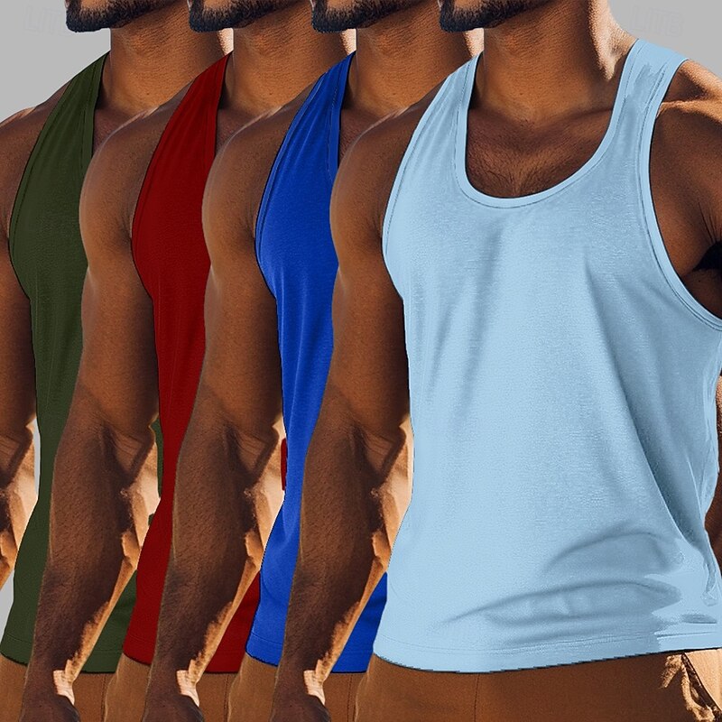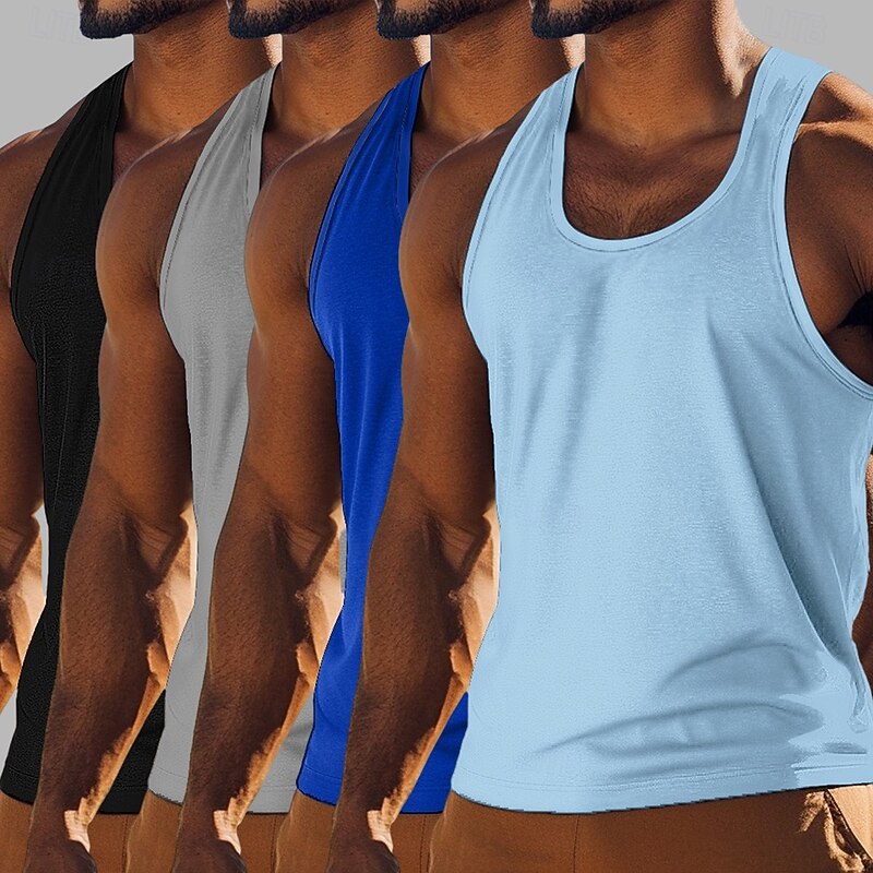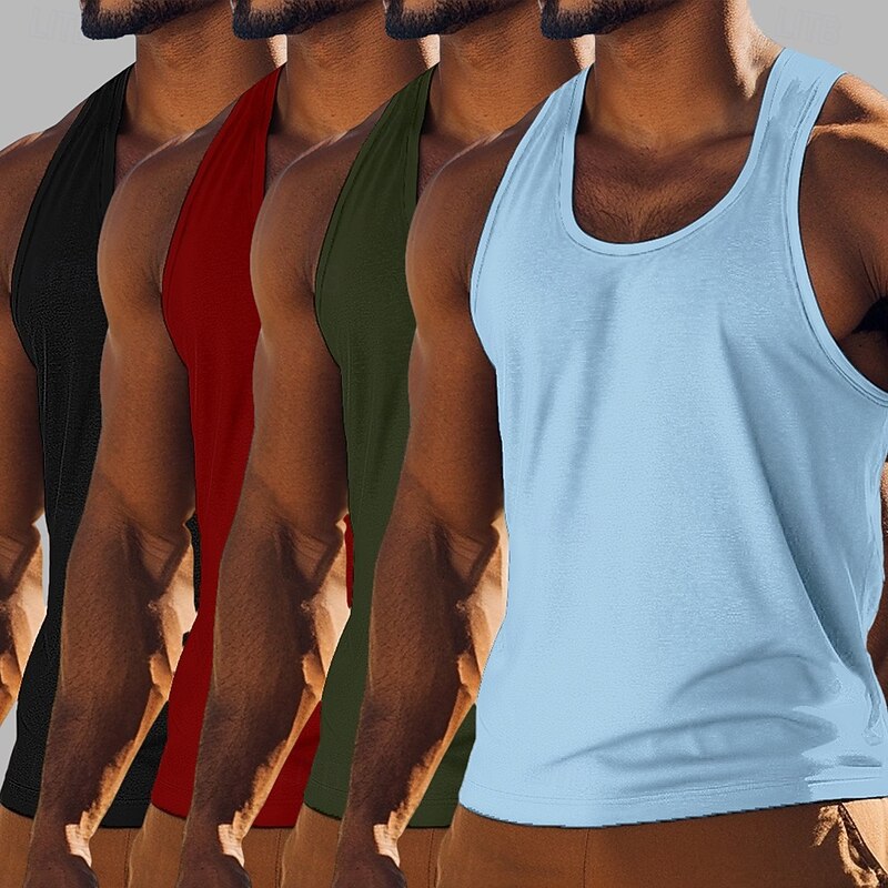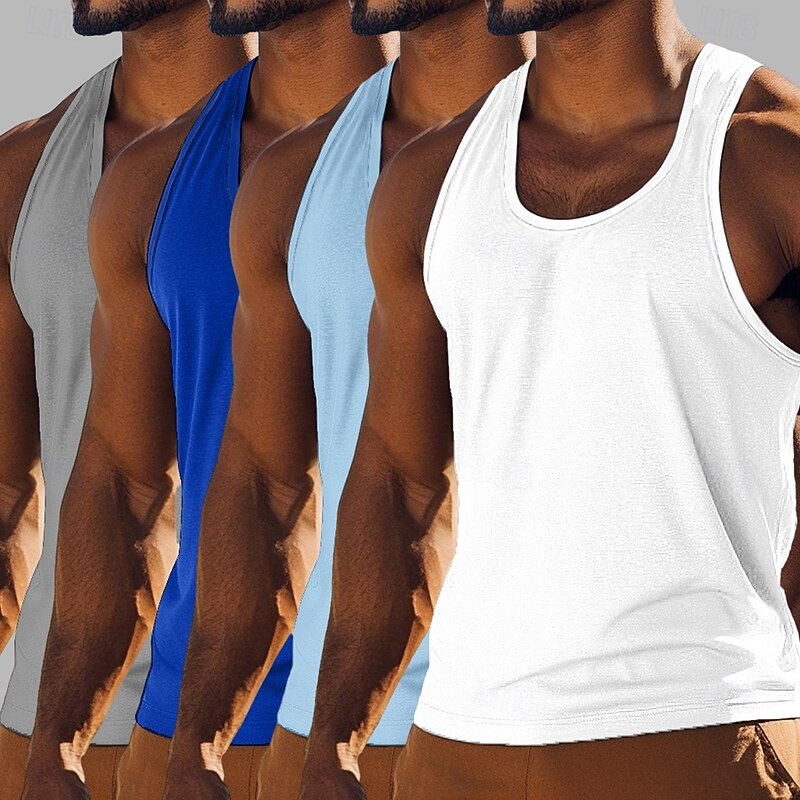 HOT ! Men's Tank Top Vest Undershirt Sleeveless Shirt Sleeveless Crewneck Scoop Neck Summer Solid Color Plain Fashion Basic Classic 4-Piece Street Casual Sports A B C Top Tee for Men