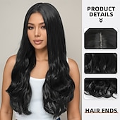 More information about Synthetic Wig Wavy Loose Curl Layered Haircut Deep Parting Machine Made Wig 24 inch A1 Synthetic Hair Women's Classic Comfortable Highlighted / Balayage Hair Black