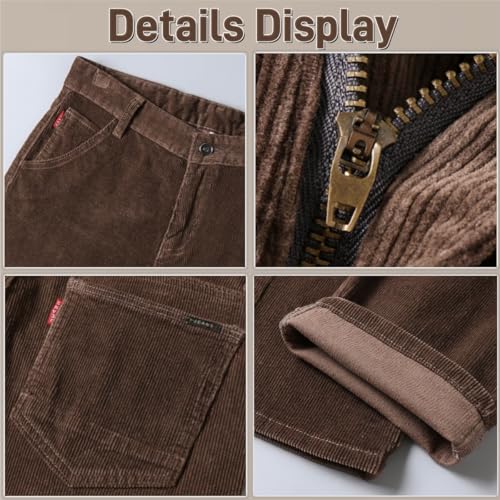 Men's Classic-Fit Corduroy Pant,Lightweight Flat-Front Casual Loose Stretch Pant,Fall Winter Straight Chino Trousers for Men 6