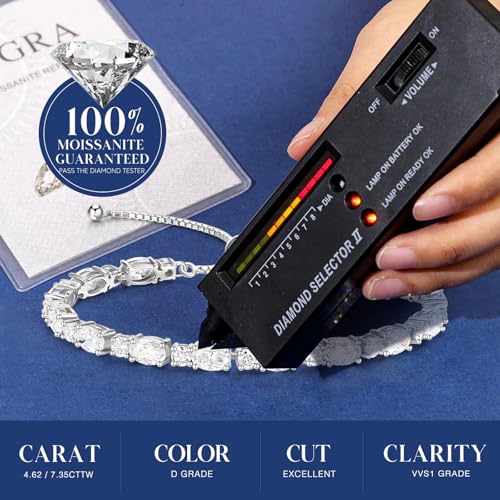 • ✦ GENUINE MOISSANITE GEMSTONES ✦ Set with 29 lab-created stones, this moissanite diamond bracelet showcases 14 oval cut and 15 round cut gems for a total of 7.35cttw. The brilliant moissanite jewelry delivers dazzling fire, 9.25 Mohs hardness, and all the beauty of diamond tennis bracelets for women—without the high price.