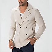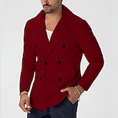 More information about Men's Blazer Trench Coat Casual Daily Lined Traditional / Classic Spring Fall & Winter Woolen Cloth Solid / Plain Color Basic Casual / Daily Double Breasted Blazer Black White Camel Claret-red