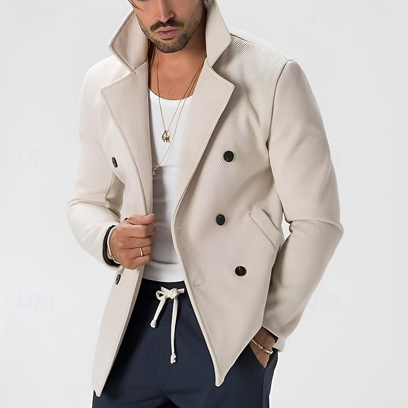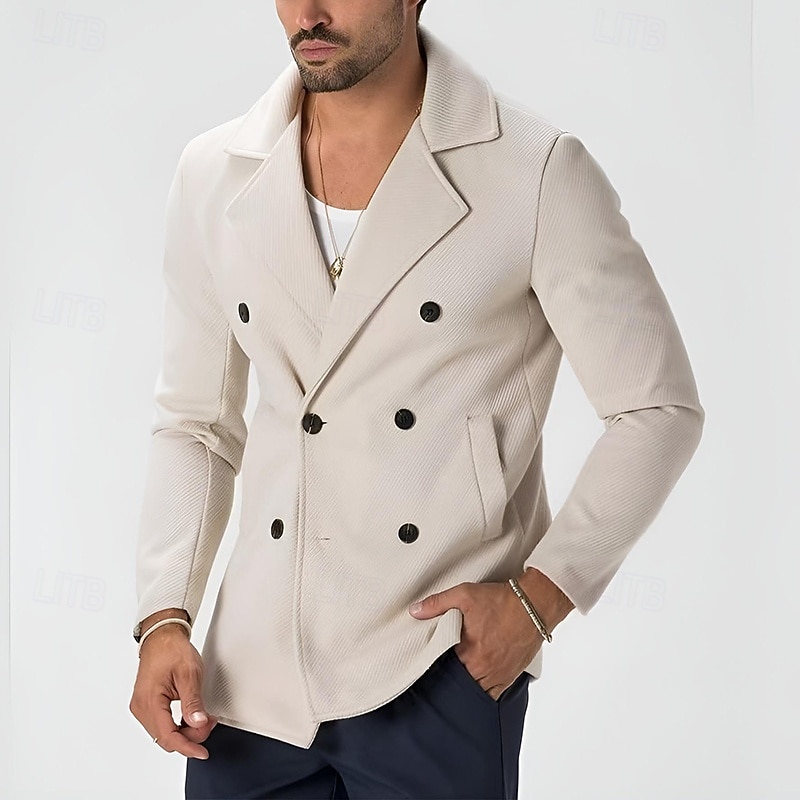 Men's Blazer Trench Coat Casual Daily Lined Traditional / Classic Spring Fall & Winter Woolen Cloth Solid / Plain Color Basic Casual / Daily Double Breasted Blazer Black White Camel Claret-red 1