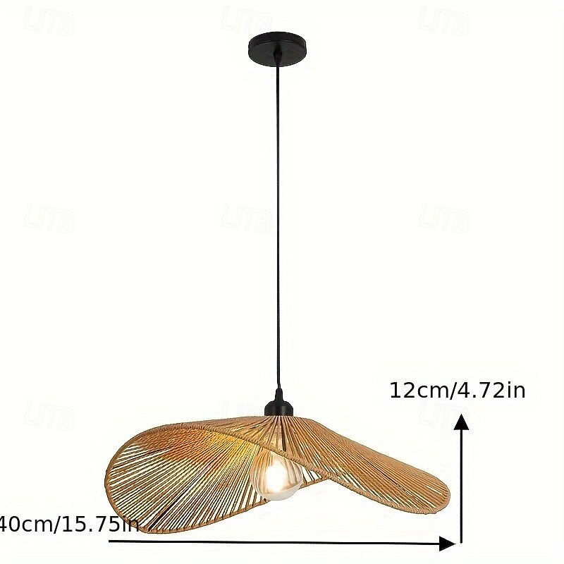 HOT ! Coastal Vintage Straw Hat-Style Pendant Light, Hand-Woven Braided Rope, Warm White/White Light, E26/E27, Adjustable Chain