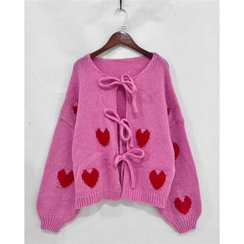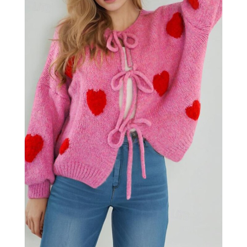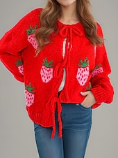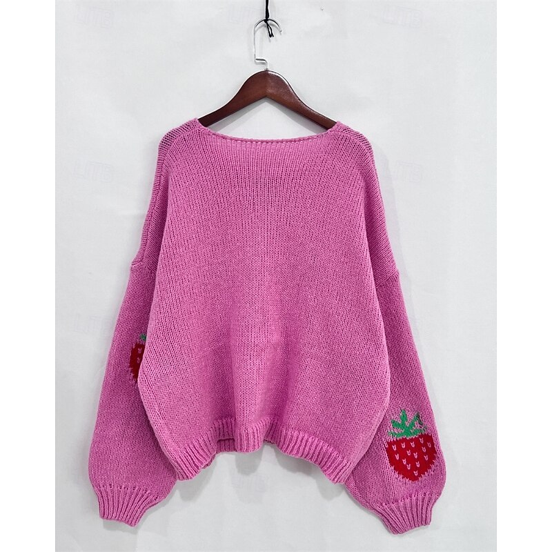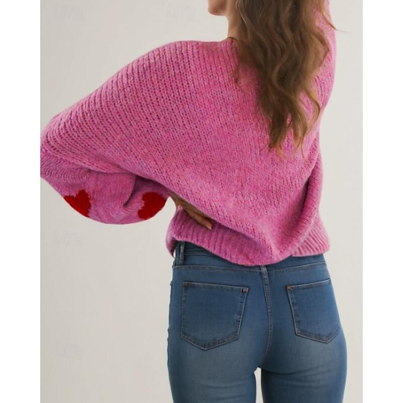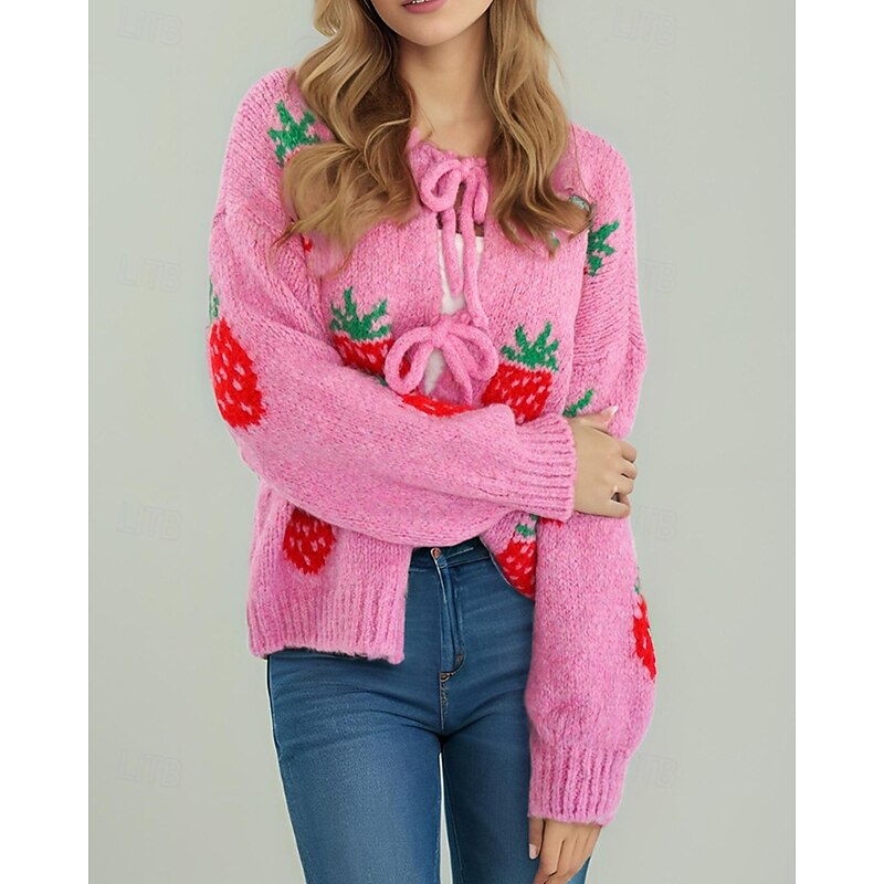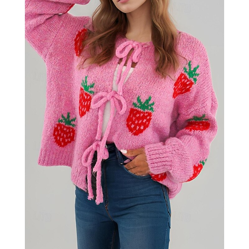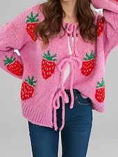 More information about Women's Sweater Cardigan Streetwear Casual Heart Fruit Crew Neck Knitted Print Long Sleeve Regular Tops Knit Daily Holiday Going out Pink Dusty Rose Fall Winter