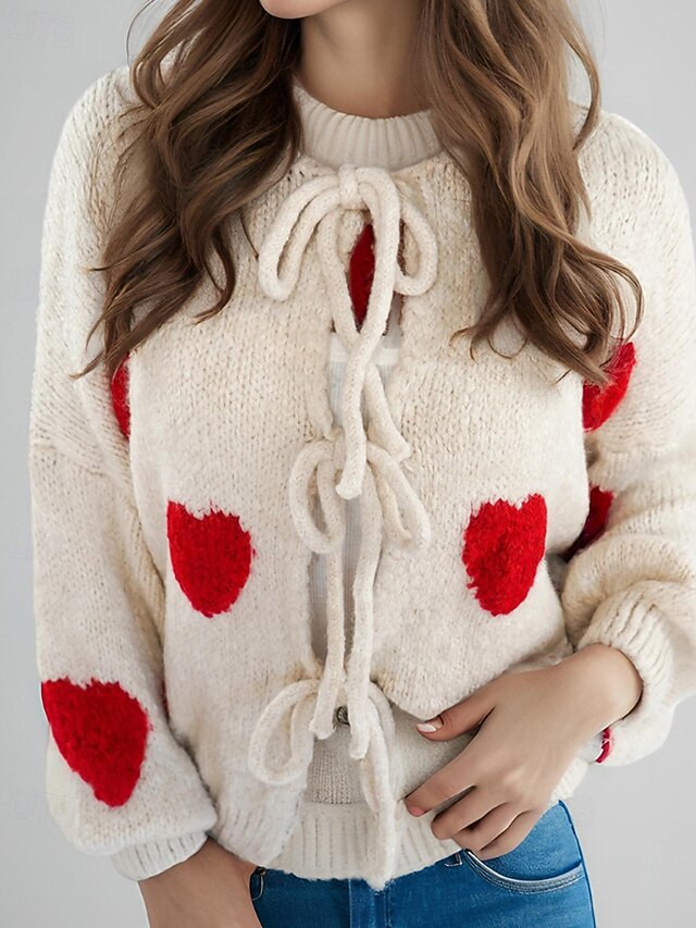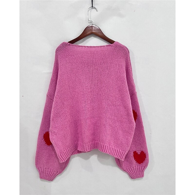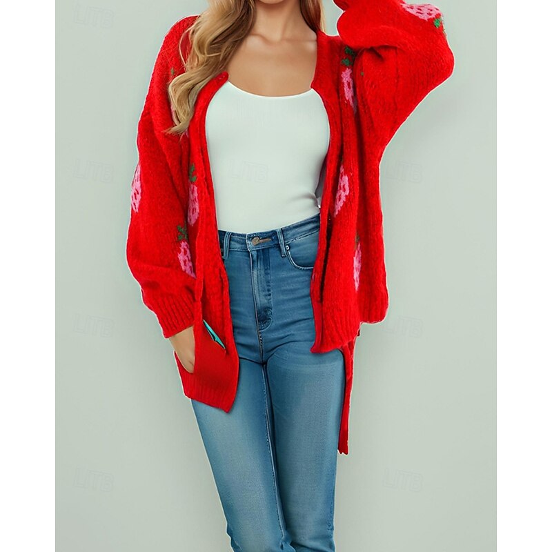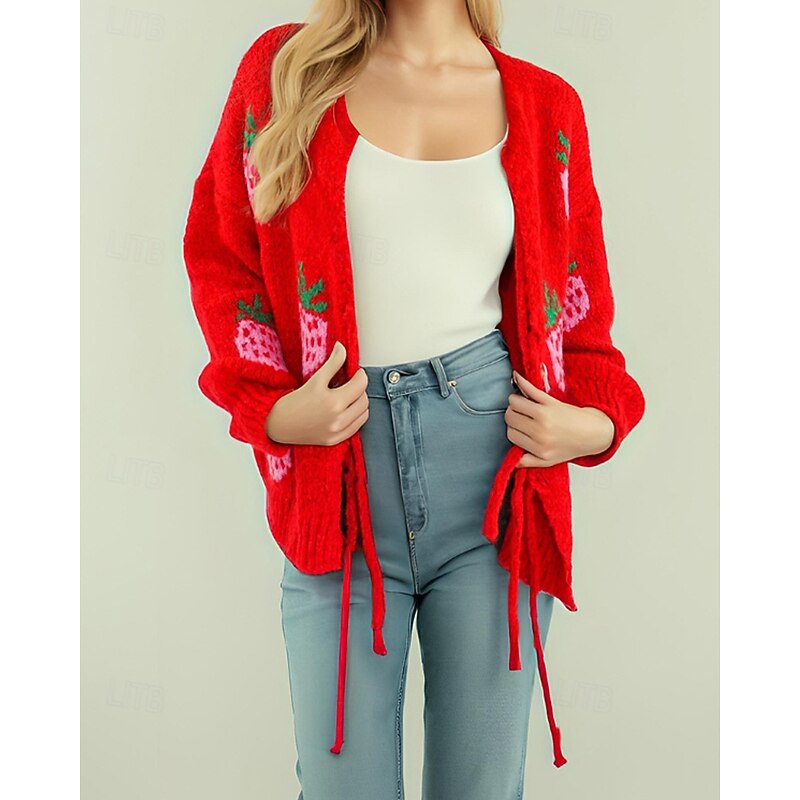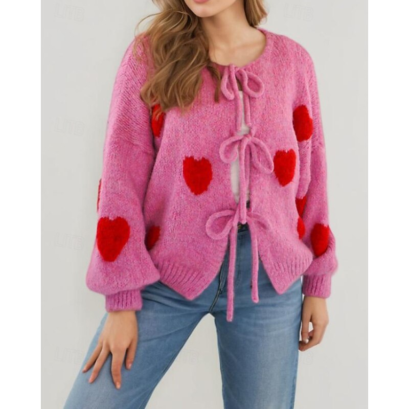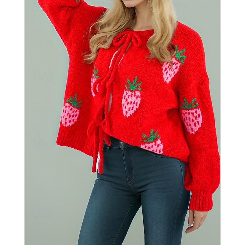 More information about Women's Sweater Cardigan Streetwear Casual Heart Fruit Crew Neck Knitted Print Long Sleeve Regular Tops Knit Daily Holiday Going out Pink Dusty Rose Fall Winter