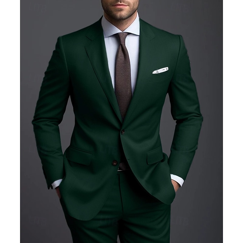 HOT ! Men's Wedding Suits Notch Burgundy Dark Green Daily Business Solid Colored Plus Size 2 Piece Single Breasted Two-buttons