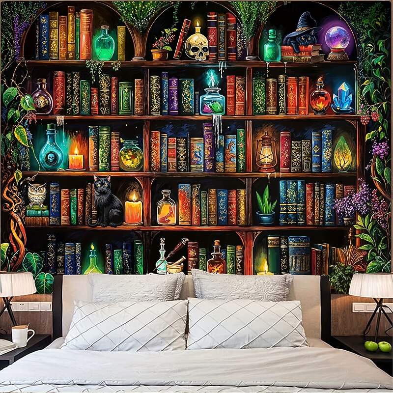 $13.99 - Witch Library Tapestry – Gothic Bookshelf Wall Hanging with Candlelit Magical Room Scene, Vintage Wall Decoration for Bedroom, Study or Living Room 2025. Shop for cheap Halloween Wall Tapestries online? Buy at lightinthebox.com on sale today!