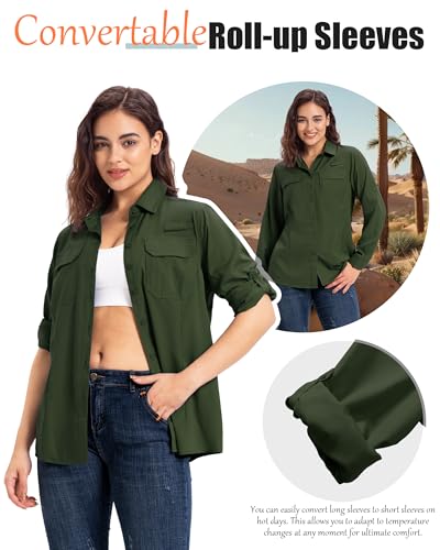 • MULTIPLE OCCASIONS: With its wrinkle-free fabric and relaxed, casual fit, this women's sun protection SPF travel shirt is great for any casual and outdoor recreation wear, such as fishing, hiking, camping, safaris, traveling, gardening, sailing, work, cycling, sailing, hunting, boating, etc, suitable for spring, summer, and fall.