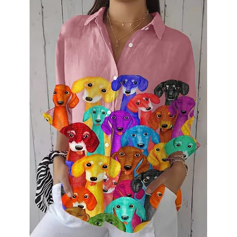 More information about Women's Shirt Button Down Tunic Shirt Collar Long Sleeve Ombre Dog Active Cute Daily Regular Tops Work Daily s Print Black White Pink Blue Green Spring Fall
