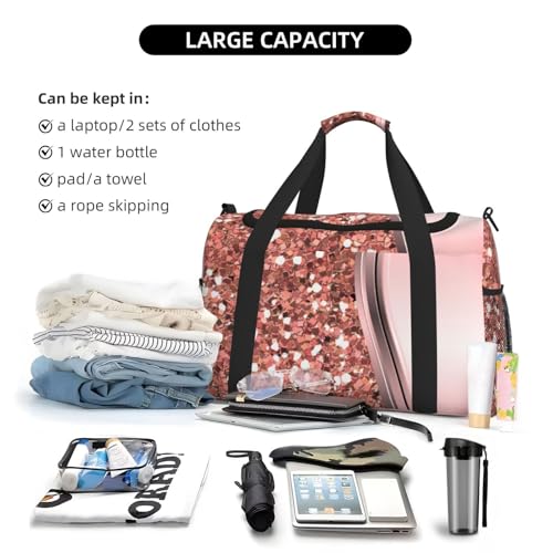 HOT ! Rose Gold Sparkle Glam Bling Large Travel Duffle Bag – Durable Polyester Weekender with Hand Carry & Shoulder Strap for Sports & Outdoor