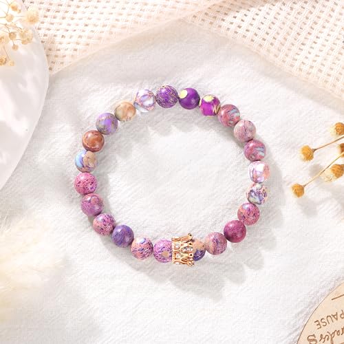 • 【Material】This bracelet is made of 8mm natural stone, possess low density and light weight. Imperial jasper is a stone of protection and energy healing. Special and unique jewelry gifts for women. Each bead is carefully selected and hand polished to guarantee its gloss and integrity. It's sturdy, durable, and suitable for any occasion.