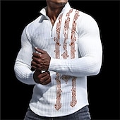 More information about Men's Geometry Waffle Polo Shirts Zip Polo Golf Polos Shirts Long Sleeve Polo Shirts Zip Casual Daily 3D Print Fall & Winter Light Yellow Black Yellow