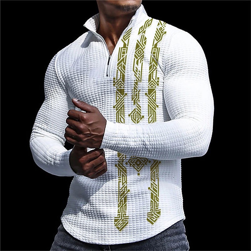 HOT ! Men's Geometry Waffle Polo Shirts Zip Polo Golf Polos Shirts Long Sleeve Polo Shirts Zip Casual Daily 3D Print Fall & Winter Light Yellow Black Yellow