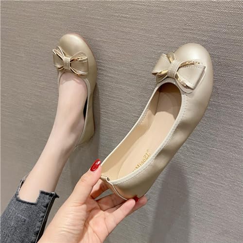 Women's Flats Shoes Ballet Flats Dress Shoes Comfortable Bow PU Leather Slip on Casual Shoes for Women 6