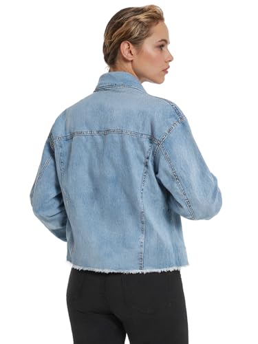 More information about YUZIBAO Denim Jacket for Women - Shacket with Button Front, Oversized Fit, Long Sleeves, Pockets & Frayed Hem