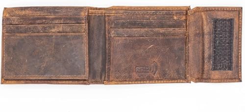 More information about Bifold Wallet for Men Velcro closer RFID Pure Leather Handcrafted Crazy Horse Flip Up window Id (Rustic Brown J225)