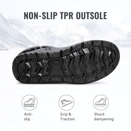 • [ WATERPROOF UPPER ]: Designed for wet and slippery conditions, these winter shoes feature a waterproof upper that keeps moisture out and a deep-tread, non-slip sole for secure footing on ice and snow. The full-length side zipper allows for easy on and off, while the mid-calf height offers added protection from the elements. Durable construction ensures they hold up well in winter slush and daily use