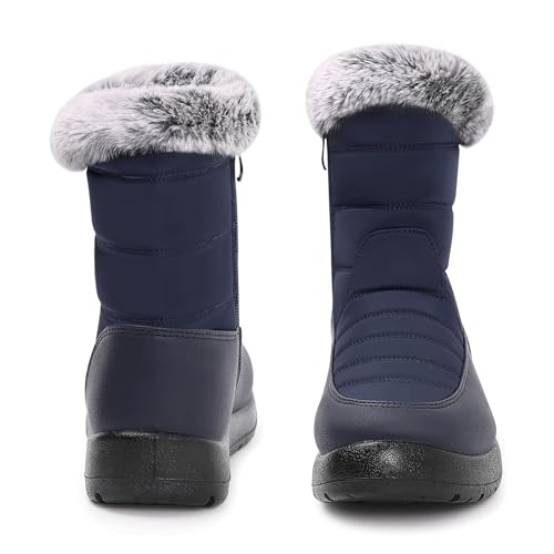 Winter Snow Boots for Women: Mid-Calf Booties with Fur Lined Zipper Comfortable Waterproof Warm Outdoor Shoes 5